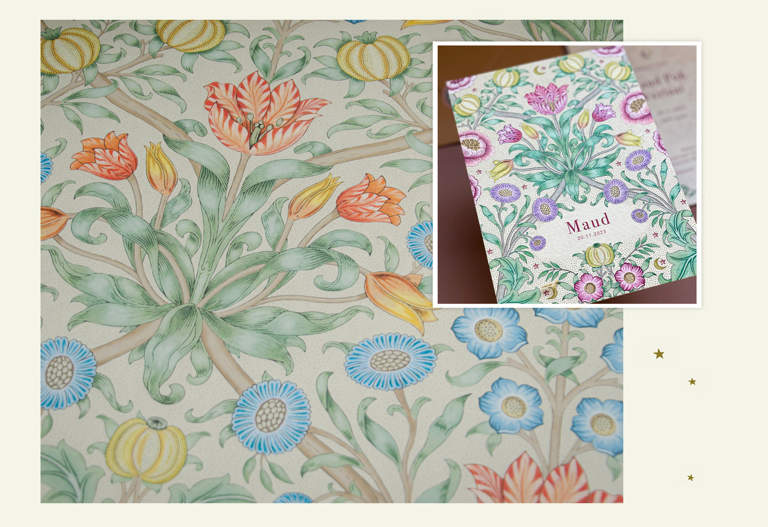 Ons Blooming Flowers behang haalt zijn inspiratie uit de Arts & Crafts-beweging, waarin vakmanschap, natuur en schoonheid hand in hand gaan. Het dessin toont weelderige bloemen en bladeren in harmonieuze patronen, met een warme en tijdloze uitstraling met gevoel voor ambacht en traditie.
